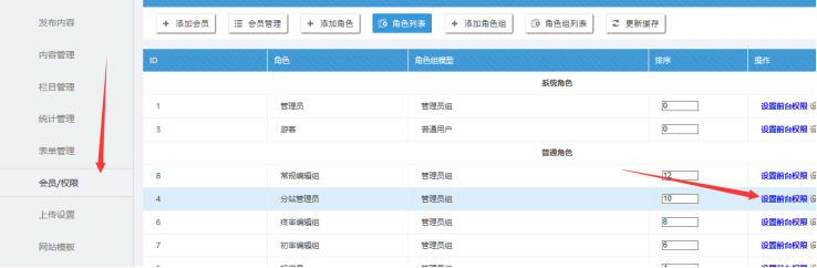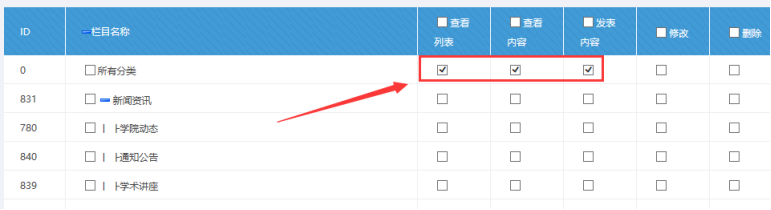三、分站管理員角色權限設置------設置為可以在主站發布內容權限