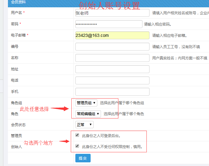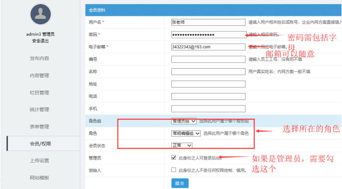如果是管理員,需要進(jìn)入后臺(tái)操作的權(quán)限,需要勾選那個(gè)此身份可以進(jìn)入后臺(tái)。