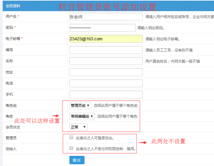 C:如果是主站的欄目管理員;添加賬號(hào)時(shí)候設(shè)置如下