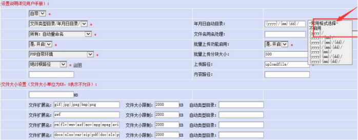 3、設置文件上傳大小和文件格式(很多word圖片無法上傳,就是文件大小限制了)---重要