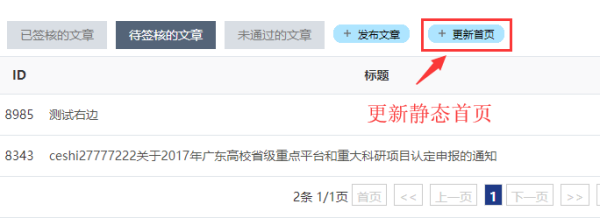 4)點擊“更新首頁”----可以更新首頁,讓內容立刻顯示(提示需要進入后臺,則輸入自己的賬號密碼即可)。