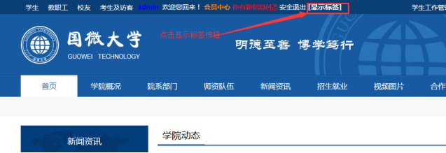也是先登錄后臺和前臺,可以看到顯示標簽按鈕