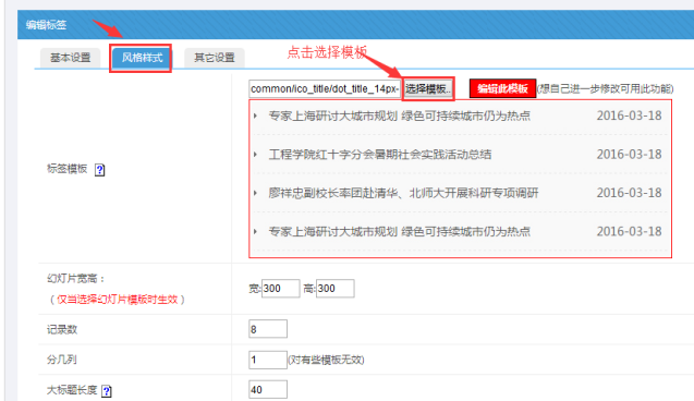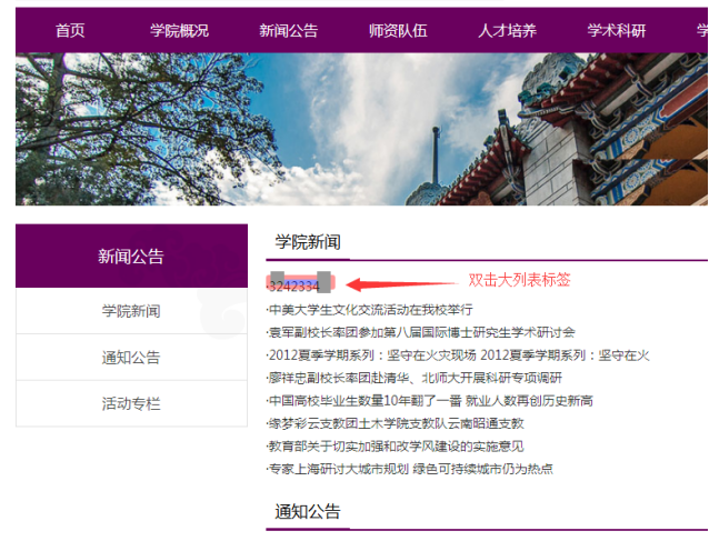 3)、如果有些大列表想與其他大列表的標簽樣式不一樣,比如需要顯示圖文排列效果的,這種情況,就需要新建一個大列表模板,將大列表里面的標簽名字改為不同的,最后雙擊標簽,設置自己所需的樣式即可。