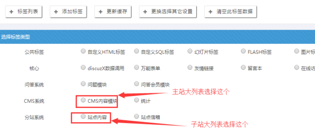 如果雙擊主站和子站大列表標簽,他是個新標簽,還沒有任何設置;那么我們需要分別做如下選擇