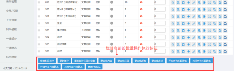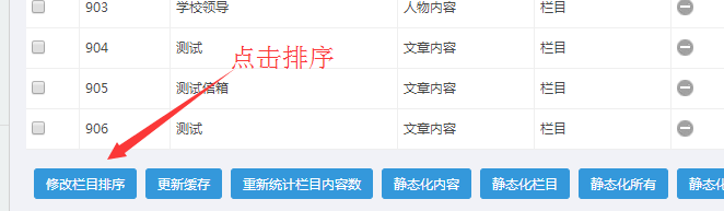 可以批量對欄目進行排序,數字大的排在前面;(根據類型字段,可以看到它是屬于大分類,還是欄目)