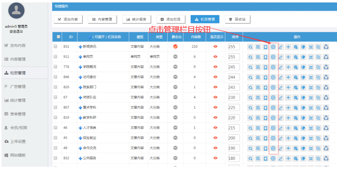 A:先登錄后臺------點擊“欄目管理”------就可以進行欄目管理了;