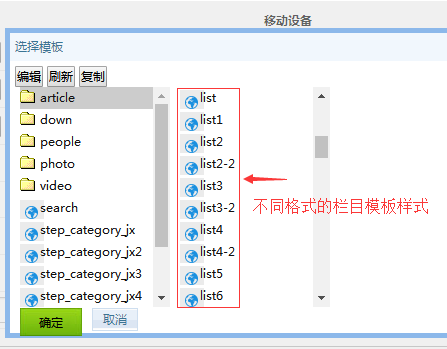 為了方便選擇,每個模板都提供樣式縮略圖;另外這些模板可以任意命名;下面是大分類模板。大分類一般以big_list開頭命名。