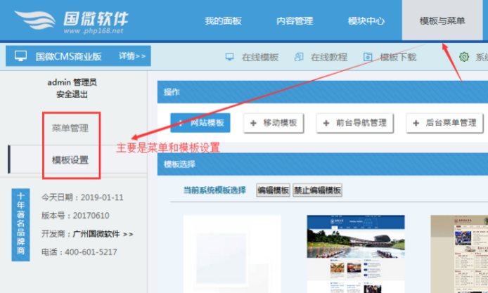 網(wǎng)站模板:可以一鍵替換主站模板;替換后需要更新模板緩存,靜態(tài)首頁。