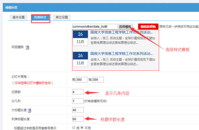 C、選擇顯示樣式模板、數量、標題長度