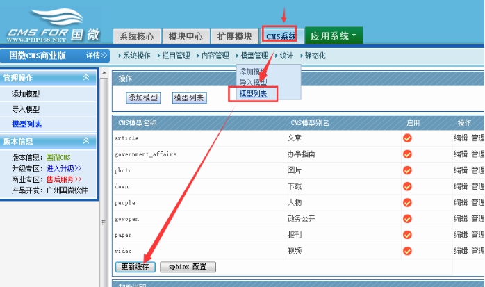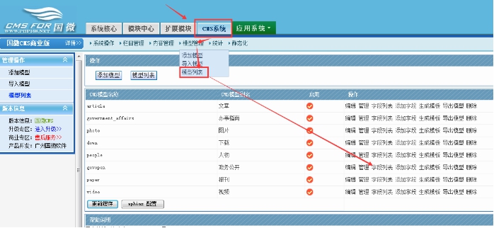 1、進入網站后臺----點擊cms系統---模型列表---政務公開---字段列表