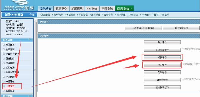 進(jìn)入后臺(tái)點(diǎn)擊左邊的“一鍵緩存”----點(diǎn)擊“標(biāo)簽緩存”