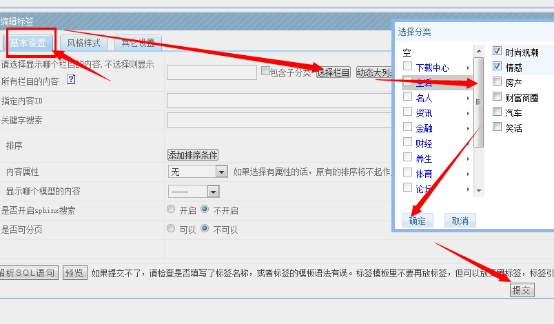 1、欄目選擇:欄目選擇后,此塊的內(nèi)容就只顯示相關(guān)所選欄目的內(nèi)容。