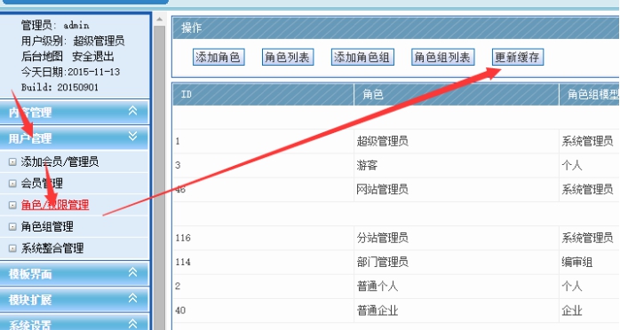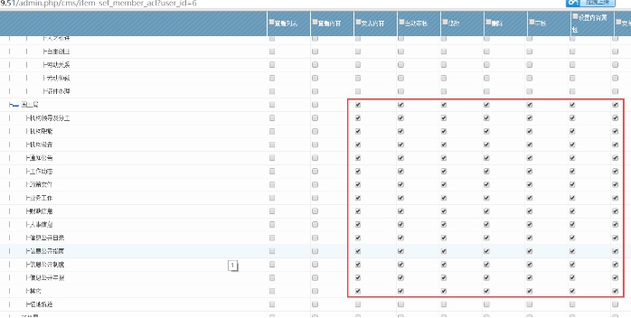 6、然后勾選對于的管理權(quán)限(上級欄目必須是勾選狀態(tài),否則權(quán)限無效,不要的欄目權(quán)限,可以去掉勾選)