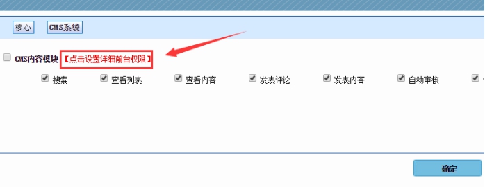3、點擊 cms系統(tǒng)----然后勾選下面的所有選項------點擊確定
