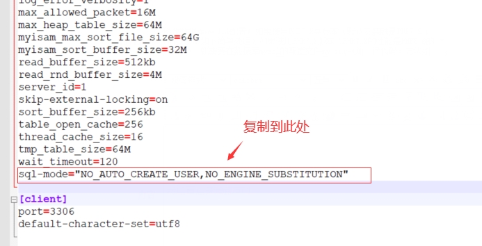 sql-mode="NO_AUTO_CREATE_USER,NO_ENGINE_SUBSTITUTION"