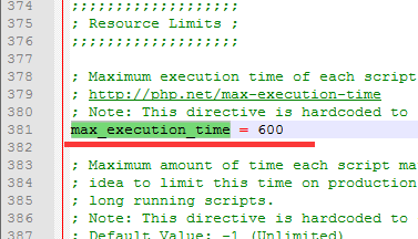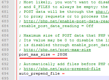 memory_limit = 285M // 在被取消之前,一個腳本可使用多少內存(字節)