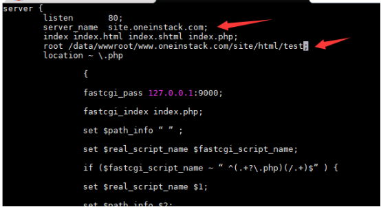 b) 編輯復制好的site.oneinstack.conf文件,修改域名以及綁定目錄