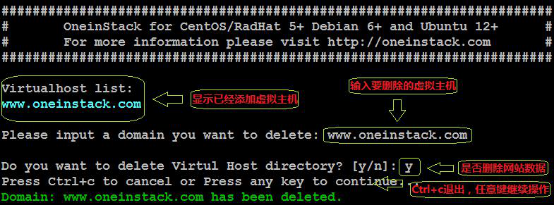 cd /root/oneinstack    #必須進入 oneinstack 目錄下執行./vhost.sh del