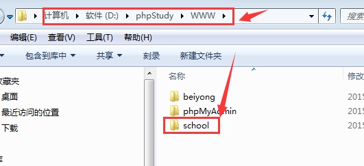 進入套件的這個WWW目錄( 每個環境存放程序的目錄有所不同 ),將國微網站程序代碼放到一個自己任意創建的文件夾里面,我們創建命名為school,最好是便于自己記憶 的;
