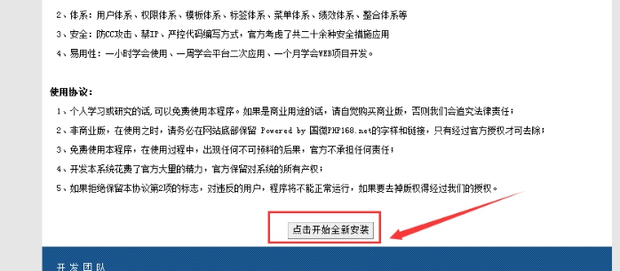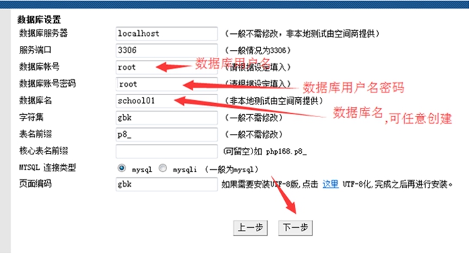 特別要注意的是:字符集、表名前綴、核心表名前綴、頁面編碼默認都不要改,否則可能會出異常情況。