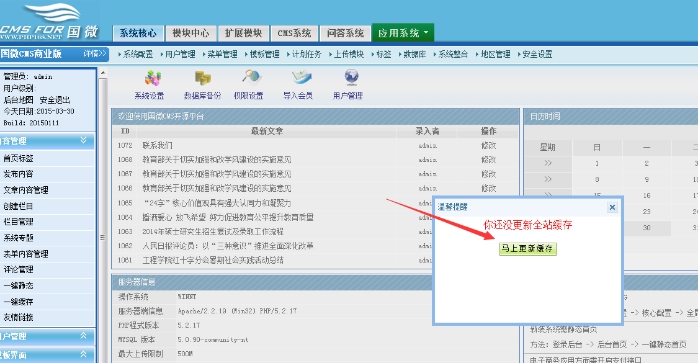 I、后臺路徑是admin.php如下;然后點擊更新網站緩存.