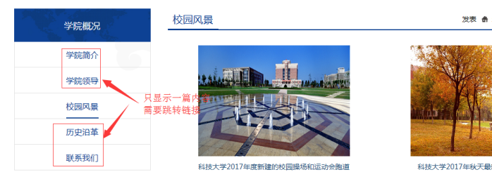 我們需要點擊左邊的欄目名稱,可以跳轉到所需的網頁地址(可以是新窗口打開或母窗口打開)
