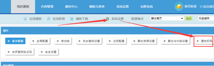 1. 首先點擊【系統設置】,然后在點擊【屬性權限】