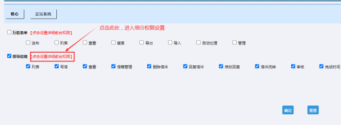4、然后,點擊 【點擊設置詳細前臺權限】,這里去設置某個部門信箱的細分權限