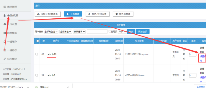 1. 首先點擊【會員/權限】------點擊【會員管理】----搜索找到所需的賬號,點擊它右邊的【設置權限】