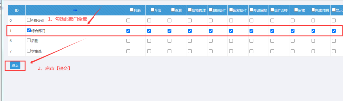 A:比如,我想此人對這個部門的信件,有管理權限,那就全部勾選--再提交