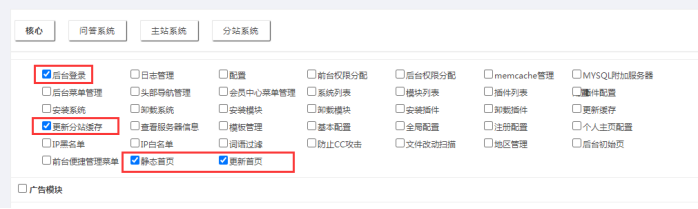 備注:確定【分站管理員】有登錄分站后臺、更新緩存、靜態首頁的權限。