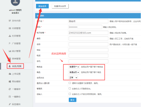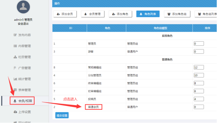 A:點擊系統后臺---【會員/權限】---選定某個角色,比如【普通會員】--------選擇某人的設置權限(點擊設置權限)
