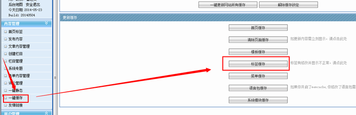 2、 緩存和靜態首頁:主要操作一鍵更新緩存和靜態首頁即可,可以讓其第一時間看到更新的內容。這里的緩存我們先只使用最簡單的一鍵緩存。