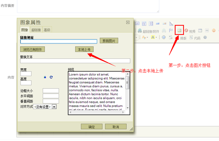 同時將將現有附件庫中的圖片也選一張放到編輯器中,并居中;并保持和上面圖片的距離。