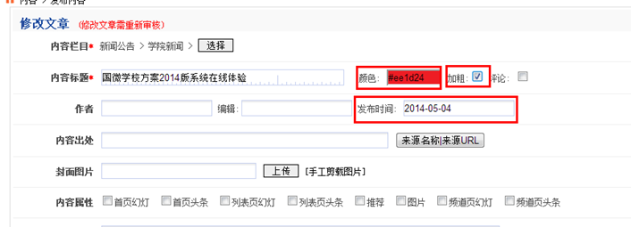 C、修改某篇文章的發布日期;將標題的顏色設置為紅色;文字加粗;