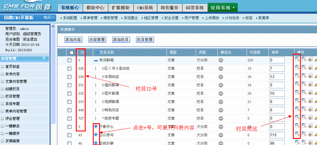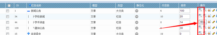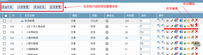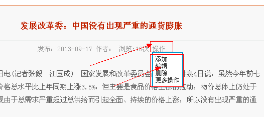 E、體驗內容頁“操作”按鈕;在某篇內容頁的“操作”按鈕上,分別點擊:編輯、刪除、添加內容。