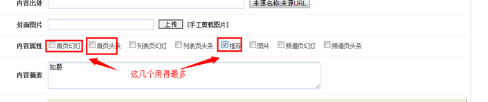 F、內容屬性設置:給任意某條內容設置屬性:前臺操作里面 "更多操作" 給內容設置屬性:推薦、首頁頭條、幻燈片頭條、頻道頭條。同時查看這些內容的屬性是否設置成功,后續的操作將會教會大家如何運用這些屬性。