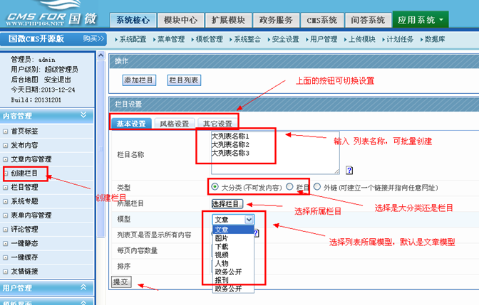 7、 您學會了添加大欄目、批量添加小欄目的操作了嗎?批量添加的時候可以批量給予欄目后綴。