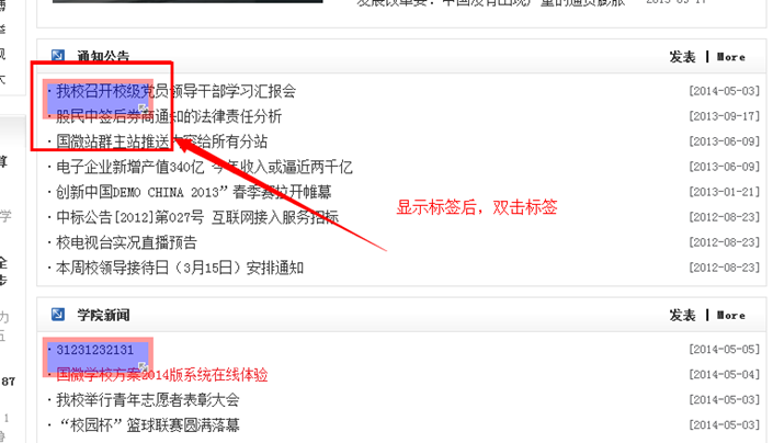 D、學會使用標題跳轉功能:在"學校新聞--通知公告"欄目中發布一篇內容,寫好文章標題;發布后,點擊此標題自動跳轉到國微官方網站:http://www.whbsysb.cn/