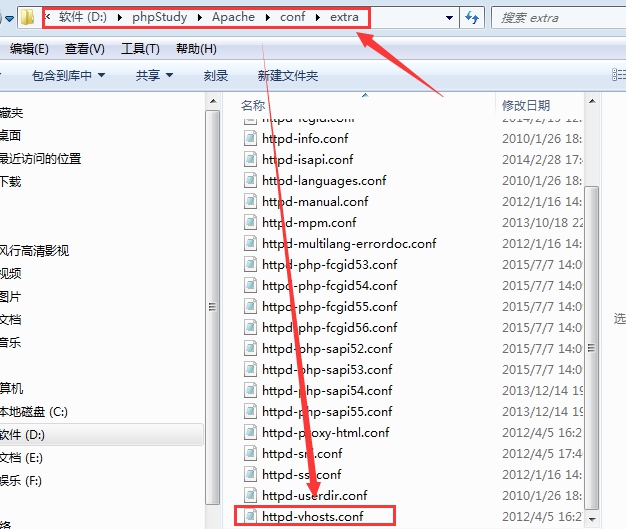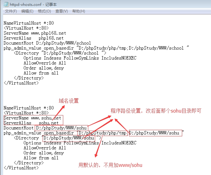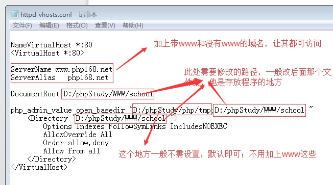 A、進入PHP環境(以PHPstudy為列,其他的對應修改方法)此路徑,用記事本打開httpd-vhosts.conf 文件