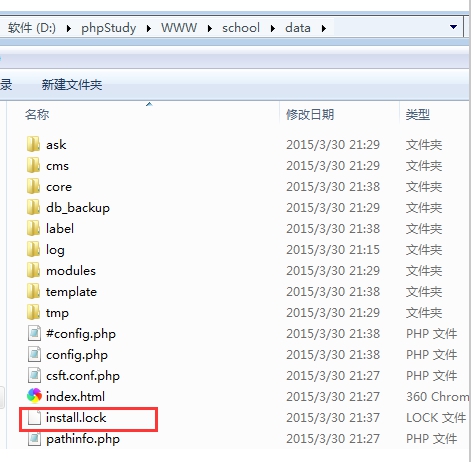 B:然后進入現有的網站根目錄---data,刪除掉install.lock安裝鎖定文件,這樣就可以重新安裝了