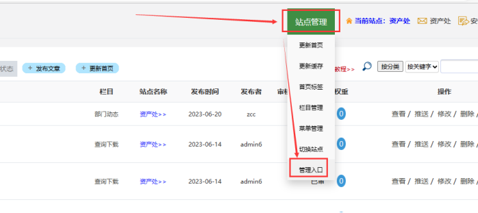 A、在會員中心點擊【站點管理】--------點擊【管理入口】