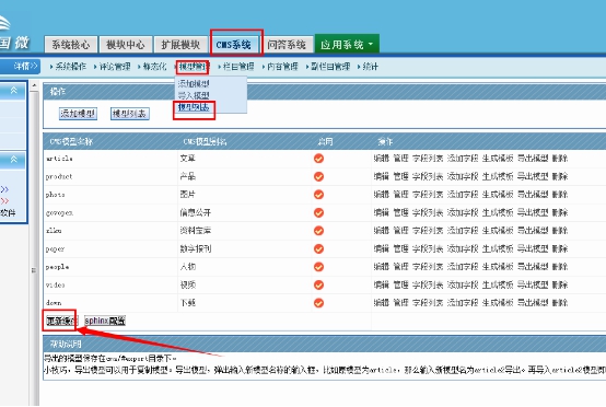 16、如果欄目管理顯示欄目不齊全,或有些模型顯示不完全,如何處理?