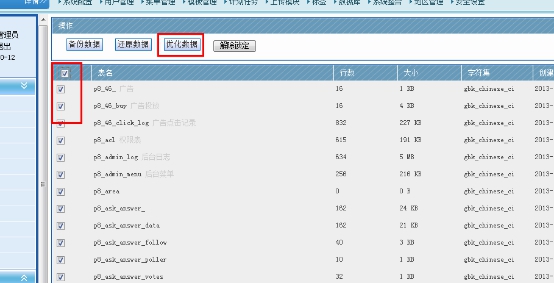 答:計劃任務列表不出現的時候,進入后臺初始頁,點擊數據備份—優化數據—全選-最后滑到底部點擊優化按鈕