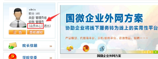 A:管理員登陸后,點擊會員中心,進入會員中心