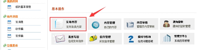 發布內容:注冊用戶在此處可以發布內容或投稿