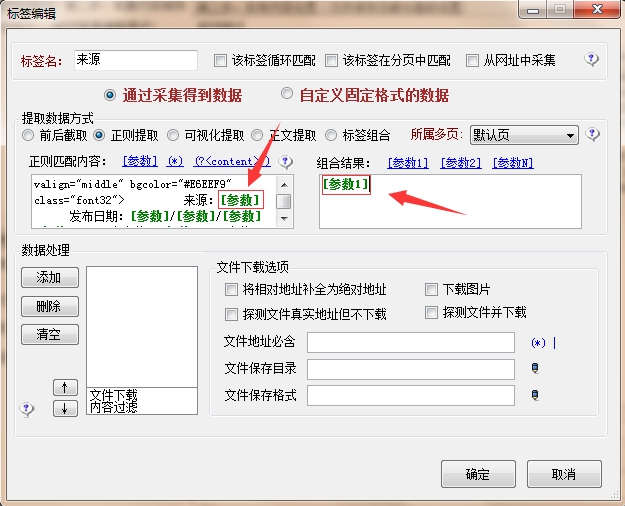 2、在火車頭采集器中,使用“正則提取”的方式來(lái)編輯標(biāo)簽,如下所示: