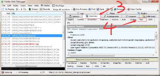 第五步,使用抓包工具fiddler分析你所要發布分站的cookie值,具體步驟如下