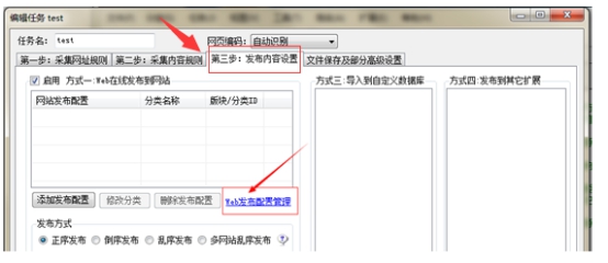 假設前面網址和內容規則寫好后,第三步:發布內容的設置