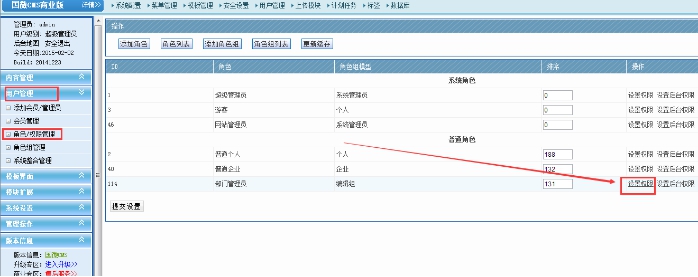 A:點擊左邊用戶管理---角色/權限管理